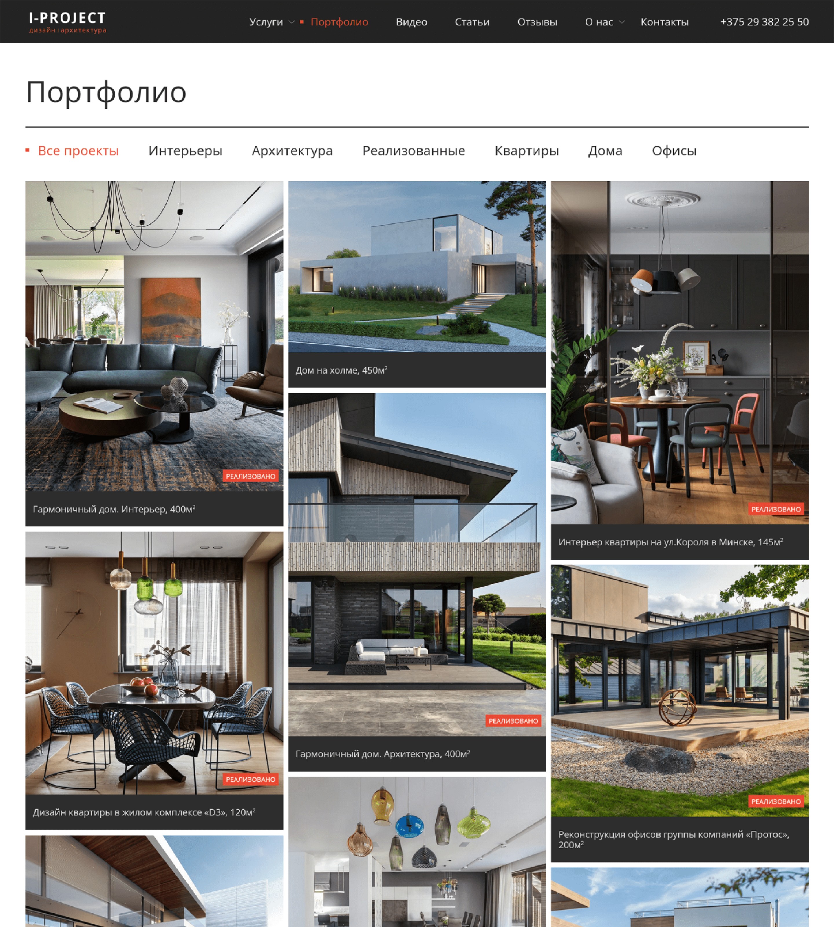Все проекты наполнены большим количеством фотографий и описанием процесса работы или предметами интерьера. Много примеров 3д визуализации в сравнение с реальными фотографиями.