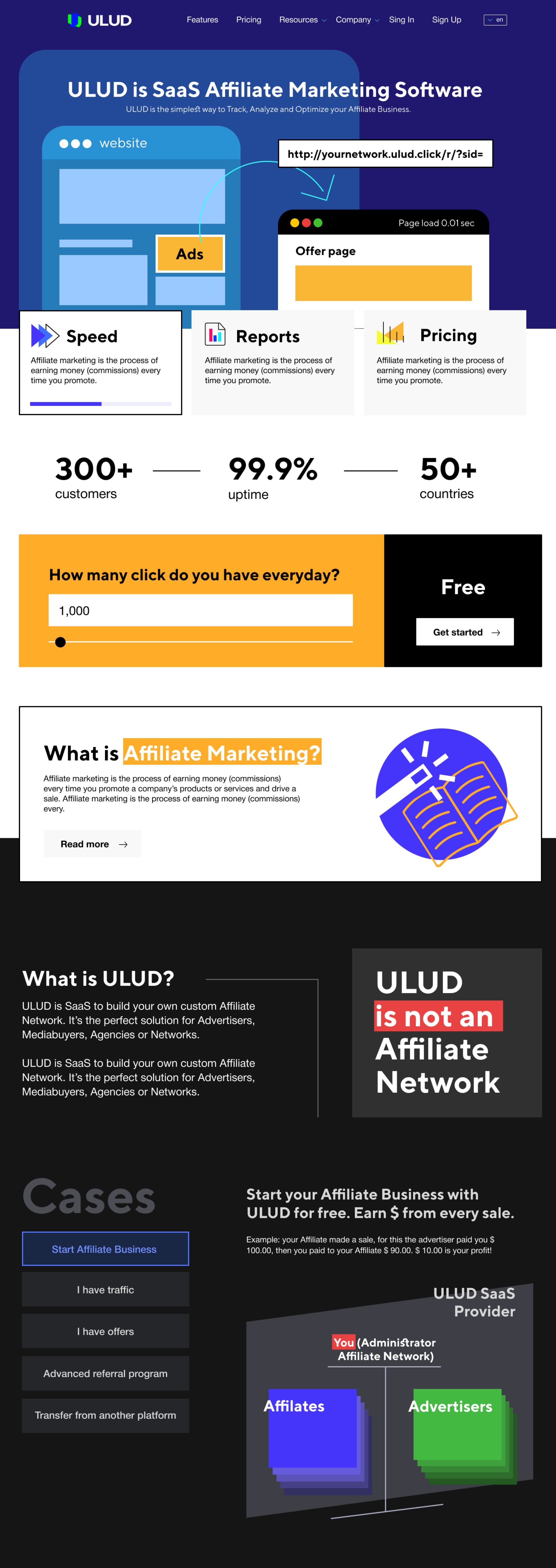 ULUD — это SaaS (программное обеспечение как услуга) для создания собственной партнерской сети. Это идеальное решение для рекламодателей, покупателей медиа, агентств или сетей.